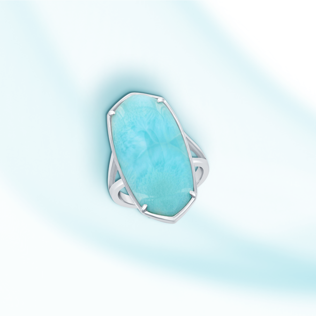 Ideal for those who appreciate jewelry with a contemporary twist, this ring is a perfect blend of artistry and nature. Whether you’re dressing up for a special event or accenting your everyday wardrobe, the Azure Prism Larimar Ring adds a touch of sophistication and a whisper of the sea’s serenity.