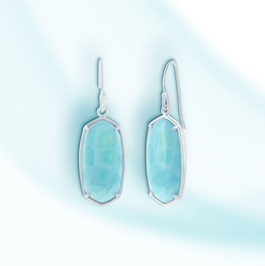 Ideal for fashion-forward individuals or anyone who loves to make a statement with their accessories, these Larimar earrings bring a unique, eye-catching element to both day and evening wear. They're perfect for adding a sophisticated flair to your ensemble while keeping a connection to the serenity of the sea.