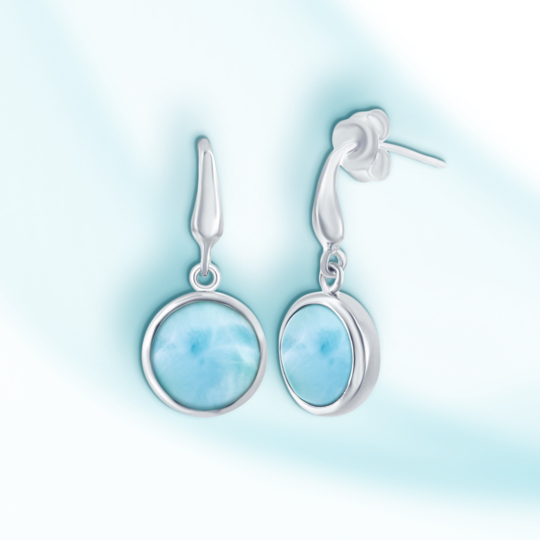 Capture the essence of Caribbean waters with our Ocean Droplet Larimar Earrings.