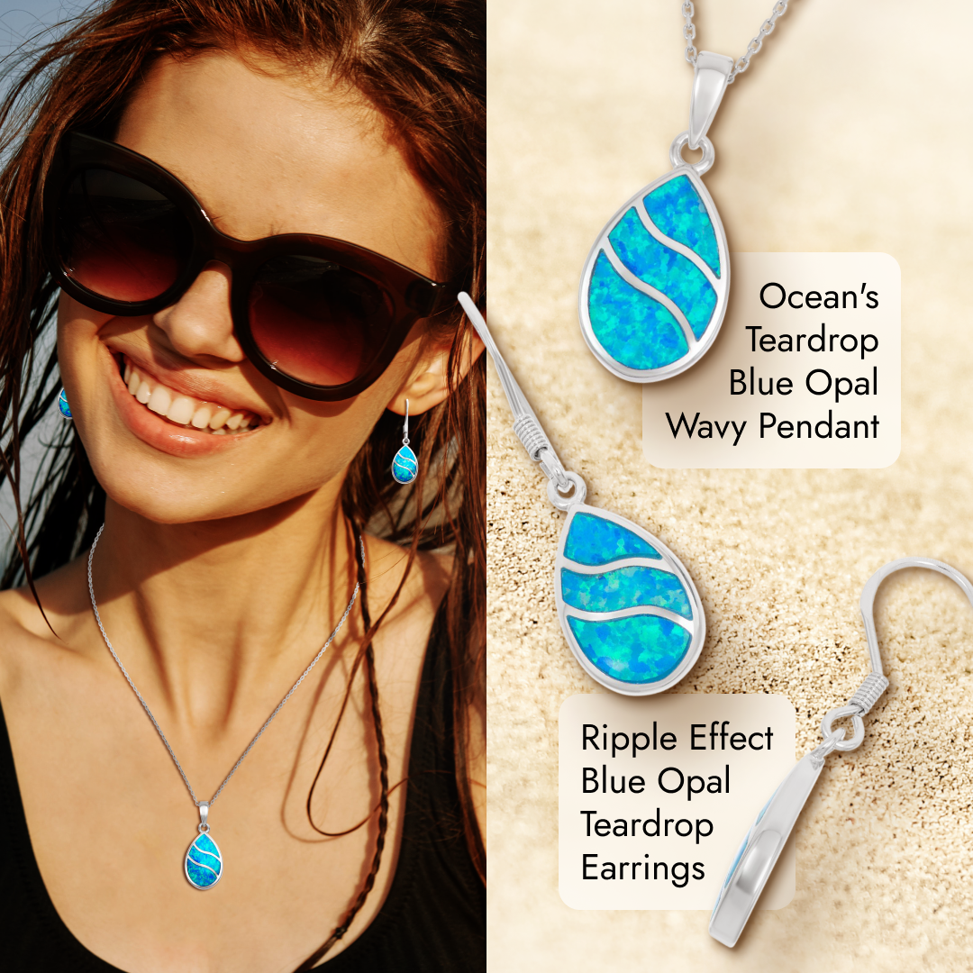 This elegant pairing combines our Ripple Effect Teardrop Earrings with the Ocean's Teardrop Pendant, creating a fluid, harmonious look inspired by the sea's gentle movements.