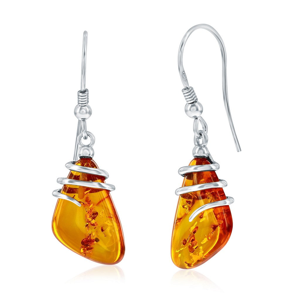 Sterling Silver, Irregular Shaped Amber Dangle Earrings