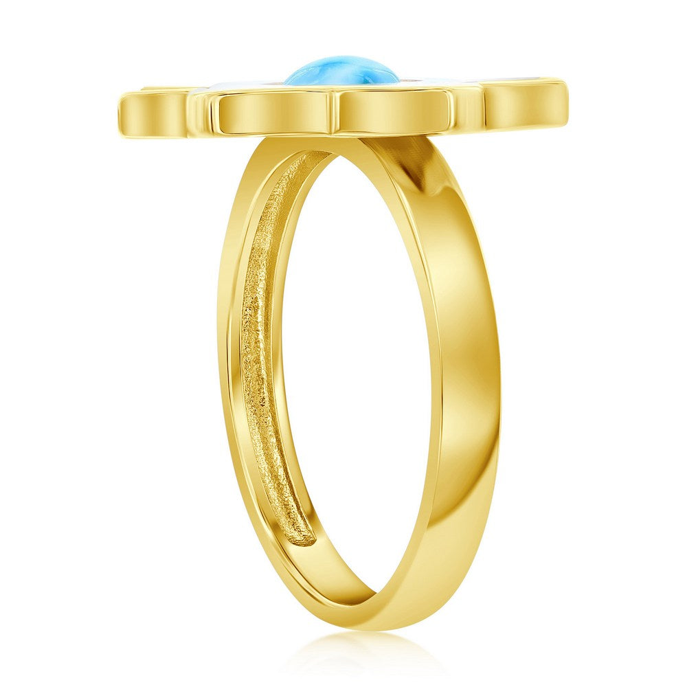 Sterling Silver, Larimar & MOP Flower Ring - Gold Plated