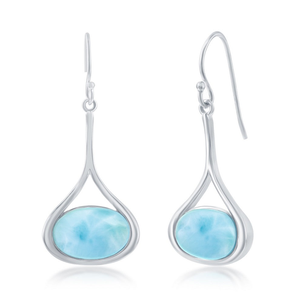Crafted from lustrous sterling silver, these elegant dangling earrings showcase captivating oval larimar stones that capture the essence of Caribbean waters. The sophisticated design features long, graceful drops that frame the face beautifully, while the serene blue tones of larimar add a refined touch to any ensemble. Perfect for those who appreciate timeless jewelry with natural gemstone allure.