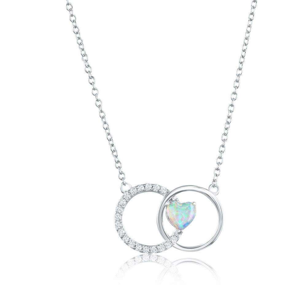 Sterling Silver, Opal Heart, Polished & CZ Circle Necklace