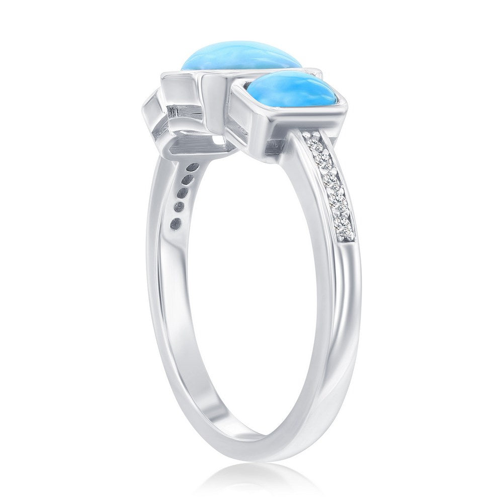 Sterling Silver, Rectangle Larimar & CZ Ring
