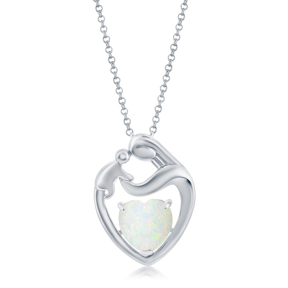 Sterling Silver, White Opal Heart Mother & Child Pendant
