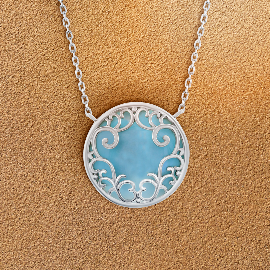Indulge in the delicate beauty of the Caribbean with our Tropical Lace Larimar Pendant.